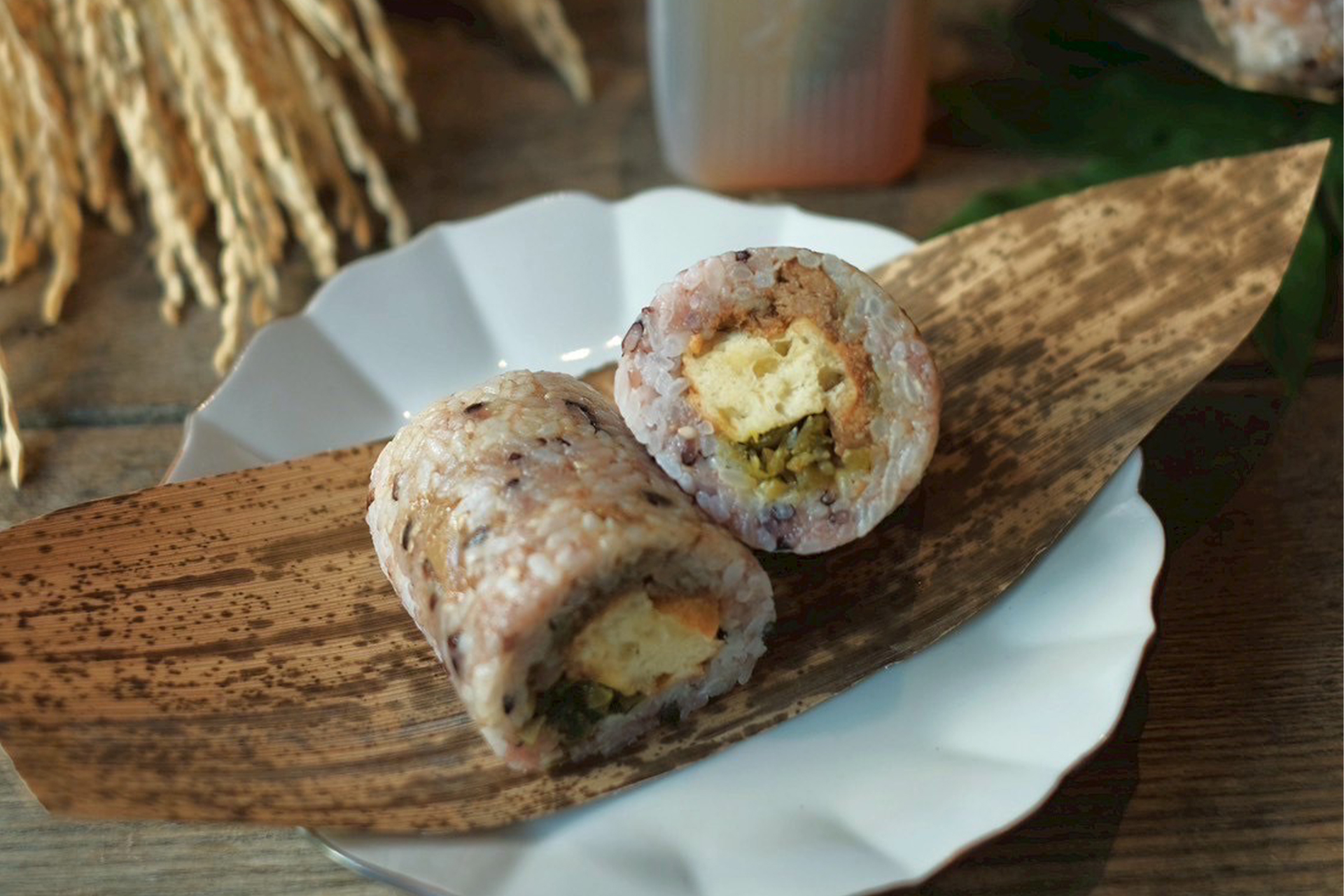 Taiwanese restaurant Si zhi tang kanazawa will be offering a limited-time menu in collaboration with Go for Kogei. Gallery SKLo is adjoined to Si zhi tang and has an exhibit of noragi (farming workwear) by Collective Action on display. Taiwanese-style okowa onigiri (sticky rice balls) inspired by the exhibit can be enjoyed for takeout (810 yen/ tax included).